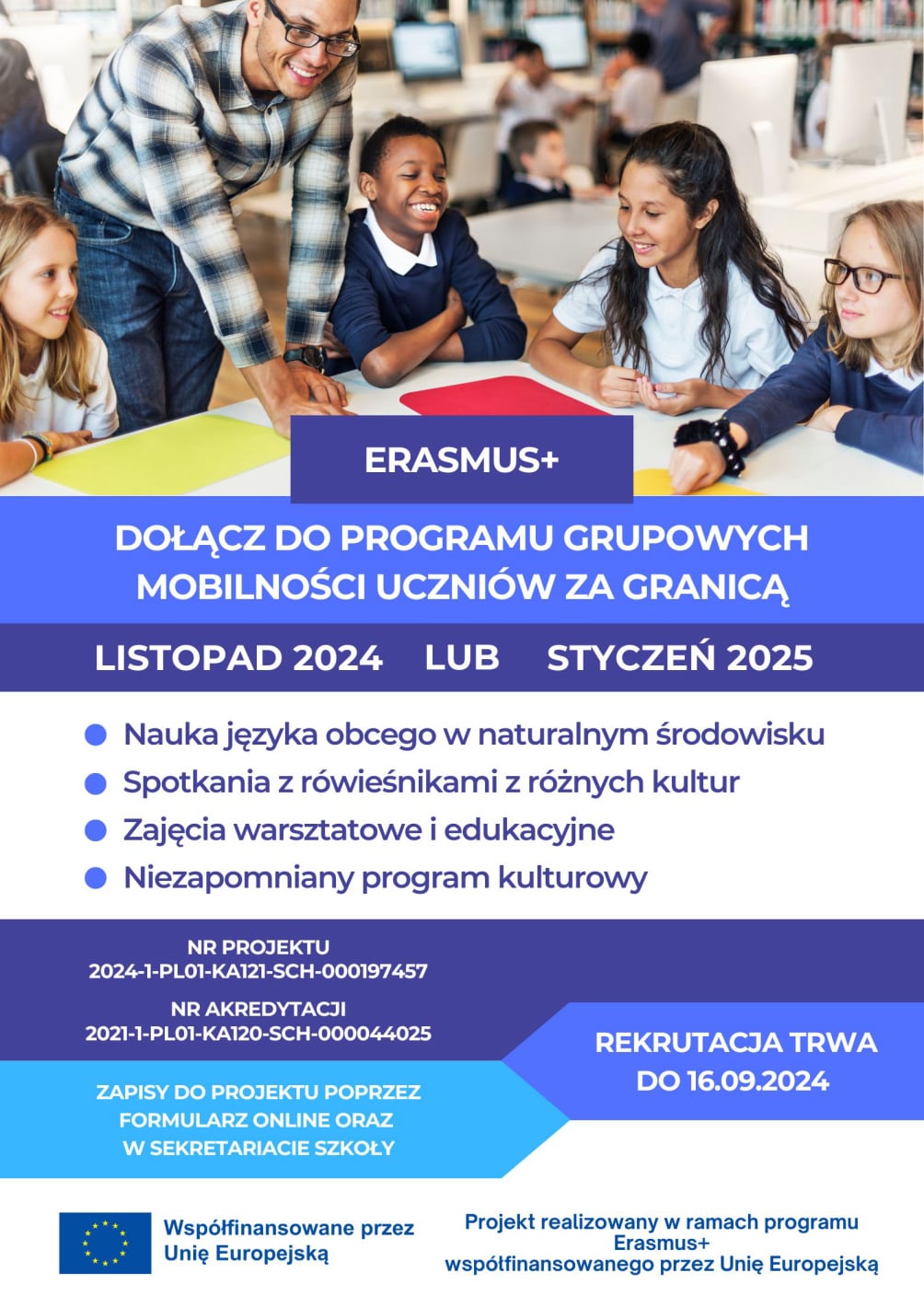 Projekt Erasmus+ został zrealizowany w dwóch etapach mobilności uczniów: pierwsza grupa odbyła wyjazd w dniach 25–29.11.2024, a druga w dniach 13–17.01.2025, przy czym każda zrealizowała inny projekt edukacyjny. Łącznie w projekcie wzięło udział 38 uczniów. Dodatkowo w ramach projektu odbyły się kursy i szkolenia dla kadry, w których wzięło udział 8 nauczycieli.