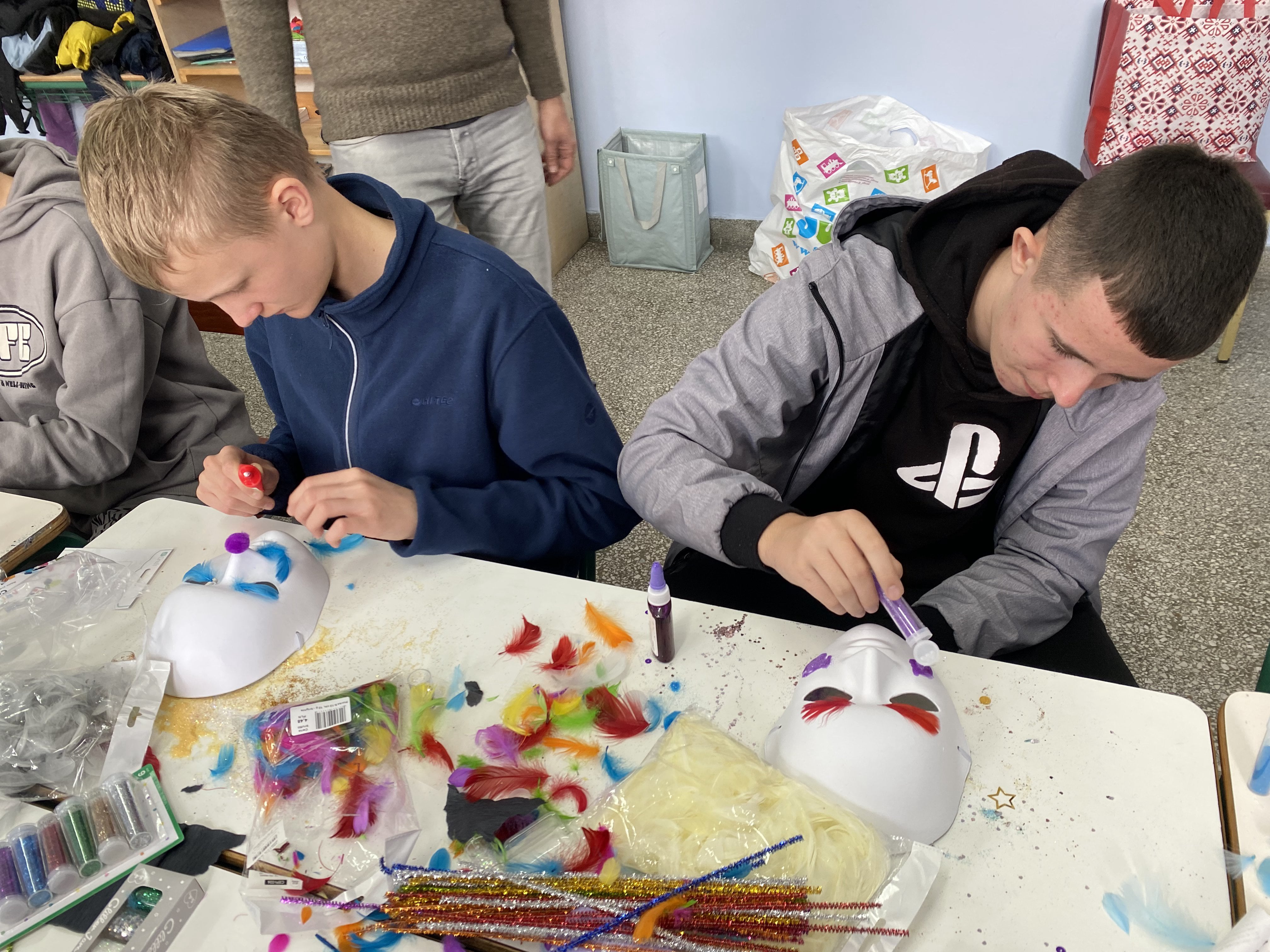 Podczas tych warsztatów, uczestnicy mieli za zadanie stworzyć maski, które odzwierciedlałyby kulturowe dziedzictwo ich ojczyzn. Razem, w atmosferze wzajemnego szacunku i kreatywnego dialogu, młodzi ludzie wymieniali się pomysłami, ucząc się jednocześnie o unikalnych aspektach kultury każdego kraju.